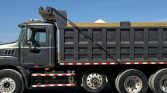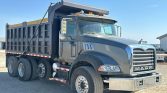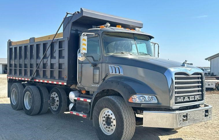 The 2008 Mack GU813 dump truck has 252,922 miles on the odometer. It is equipped with a Mack MP8 12.8L 6-cylinder diesel engine with an engine brake and an automated manual transmission.