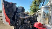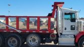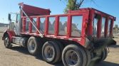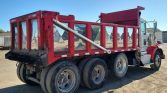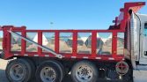 The dump bed is a Hilbilt 1614 with a 16 cubic yard capacity, measuring 16 feet long by 96 inches wide with 39-inch side height. The bed is steel with a single ram and air-operated end gate. Tires are size 11R24.5 with a lift axle tire size of 285/75R24.5.