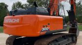 The 2016 Hitachi ZX300LC-6N excavator has 3,781 hours on the meter. It is powered by an Isuzu 6-cylinder diesel engine with a 7.79L displacement and uses a hydrostatic transmission with two-speed travel. The operator’s station features an enclosed cab with air conditioning, heat, and a pattern changer. Additional features include auxiliary hydraulics with a third valve, a standard boom, and a 124-inch stick. The machine is equipped with a hydraulic quick coupler, a hydraulic thumb, and a 42-inch bucket with a bolt-on cutting edge and 5 teeth. It rides on 31.5-inch-wide steel tracks with triple grouser pads.