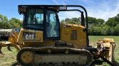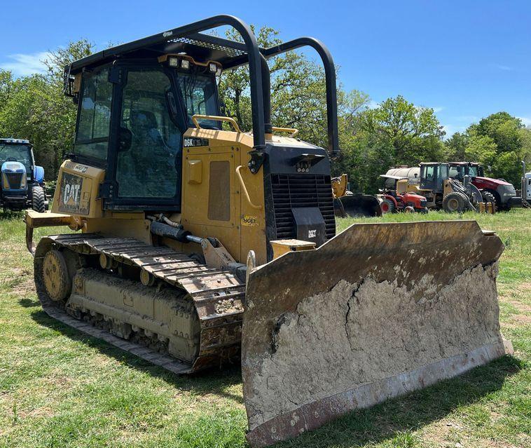 The 2017 Caterpillar D6K2 XL dozer has 4,829 hours on the meter (may vary as the unit is still in use). It features a 4-cylinder Caterpillar C4.4 Acert diesel engine paired with a hydrostatic transmission. The operator's station is an enclosed cab with AC and heat, with joystick steering.