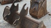 Buckets: Width 25″ with 5 teeth, width 17.5″ with 4 teeth, USA Attachments Inc. bucket with width 48″ and bolt-on cutting edge