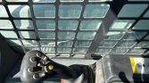 Operator’s station features an enclosed cab with air conditioning and heat. Includes hand-controlled bucket operation, a pattern changer, and an Electronic Monitoring System panel for enhanced control and diagnostics.