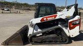 Comes with an 80-inch bucket with bolt-on teeth. The machine is fitted with 12-inch wide tracks for improved traction and stability in various ground conditions.